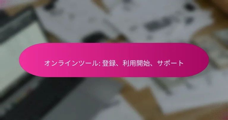 オンラインツールは、インターネットを介してアクセスできる便利なソフトウェアやアプリケーションです。登録は簡単で、基本情報を入力するだけでアカウントを作成できます。利用開始には、登録から初期設定、基本機能の利用までのステップが含まれ、スムーズに活用できるようになります。 オンラインツールとは何ですか? オンラインツールは、インターネットを介してアクセスできるソフトウェアやアプリケーションのことです。これにより、ユーザーは特定のタスクを効率的に実行できるようになります。 オンラインツールの定義と特徴 オンラインツールは、ウェブブラウザを通じて利用できるアプリケーションで、インストール不要で即座に使用開始できます。主な特徴には、リアルタイムのコラボレーション、データのクラウド保存、そして多様なデバイスからのアクセスが含まれます。 これらのツールは、ユーザーがインターネット接続さえあれば、どこでも利用できるため、特にリモートワークやチームプロジェクトに適しています。 オンラインツールの種類 オンラインツールには、プロジェクト管理ツール、コミュニケーションツール、デザインツール、データ分析ツールなど多岐にわたります。例えば、TrelloやAsanaはプロジェクト管理に特化し、SlackやZoomはコミュニケーションをサポートします。 これらのツールは、特定のニーズに応じて選択できるため、ユーザーは自分の業務に最適なものを見つけやすくなっています。 オンラインツールの利点 オンラインツールの最大の利点は、アクセスの容易さとコストの削減です。多くのツールは無料プランを提供しており、必要に応じて有料プランにアップグレードできます。 さらに、リアルタイムでの共同作業が可能なため、チームメンバーが異なる場所にいても効果的に連携できます。 オンラインツールの利用シーン オンラインツールは、ビジネス、教育、クリエイティブなプロジェクトなど、さまざまなシーンで利用されています。例えば、リモートチームがプロジェクトを管理する際や、学生が共同で課題に取り組む際に役立ちます。 また、マーケティングキャンペーンのデータ分析や、顧客サポートの効率化にも利用され、幅広い業界での活用が進んでいます。 オンラインツールの登録方法は? オンラインツールの登録方法は、一般的に簡単で迅速です。多くのサービスでは、基本情報を入力するだけでアカウントを作成できます。 登録に必要な情報 オンラインツールに登録する際には、通常、メールアドレスやパスワード、ユーザー名などの基本情報が必要です。場合によっては、電話番号や住所の入力を求められることもあります。 特にビジネス向けのツールでは、会社名や役職などの追加情報が必要になることがあります。これらの情報は、サービスの利用状況を把握するために役立ちます。 登録手続きのステップ 登録手続きは、以下のステップで行います。まず、公式ウェブサイトにアクセスし、「登録」または「サインアップ」ボタンをクリックします。 必要な情報を入力します。 利用規約に同意し、確認メールを受け取ります。 メール内のリンクをクリックしてアカウントを有効化します。 これらのステップは、数分以内に完了することが一般的です。 登録時の注意点 登録時には、パスワードの強度に注意が必要です。大文字、小文字、数字、記号を組み合わせた強力なパスワードを設定しましょう。 また、利用規約やプライバシーポリシーをよく読み、特にデータの取り扱いについて理解しておくことが重要です。これにより、後々のトラブルを避けることができます。 オンラインツールの利用開始方法は? オンラインツールの利用開始方法は、登録から初期設定、基本機能の利用までの一連のプロセスを含みます。これらのステップを踏むことで、スムーズにツールを活用できるようになります。 初期設定の手順 初期設定は、オンラインツールを効果的に利用するための重要なステップです。まず、アカウントを作成した後、プロフィール情報や設定を入力します。 次に、ツールの機能に応じて、必要なオプションやプライバシー設定を調整します。これにより、自分のニーズに合った使い方が可能になります。 基本機能の使い方 基本機能の使い方は、ツールによって異なりますが、一般的にはダッシュボードから各機能にアクセスできます。例えば、データの入力やレポートの生成などが含まれます。 多くのツールでは、チュートリアルやヘルプガイドが用意されているため、初めての方でも簡単に操作を学ぶことができます。特に、ショートカットキーや便利な機能を活用すると、作業効率が向上します。 利用開始後のサポート 利用開始後のサポートは、オンラインツールを最大限に活用するために重要です。多くのサービスでは、FAQやカスタマーサポートが提供されています。 また、コミュニティフォーラムやユー